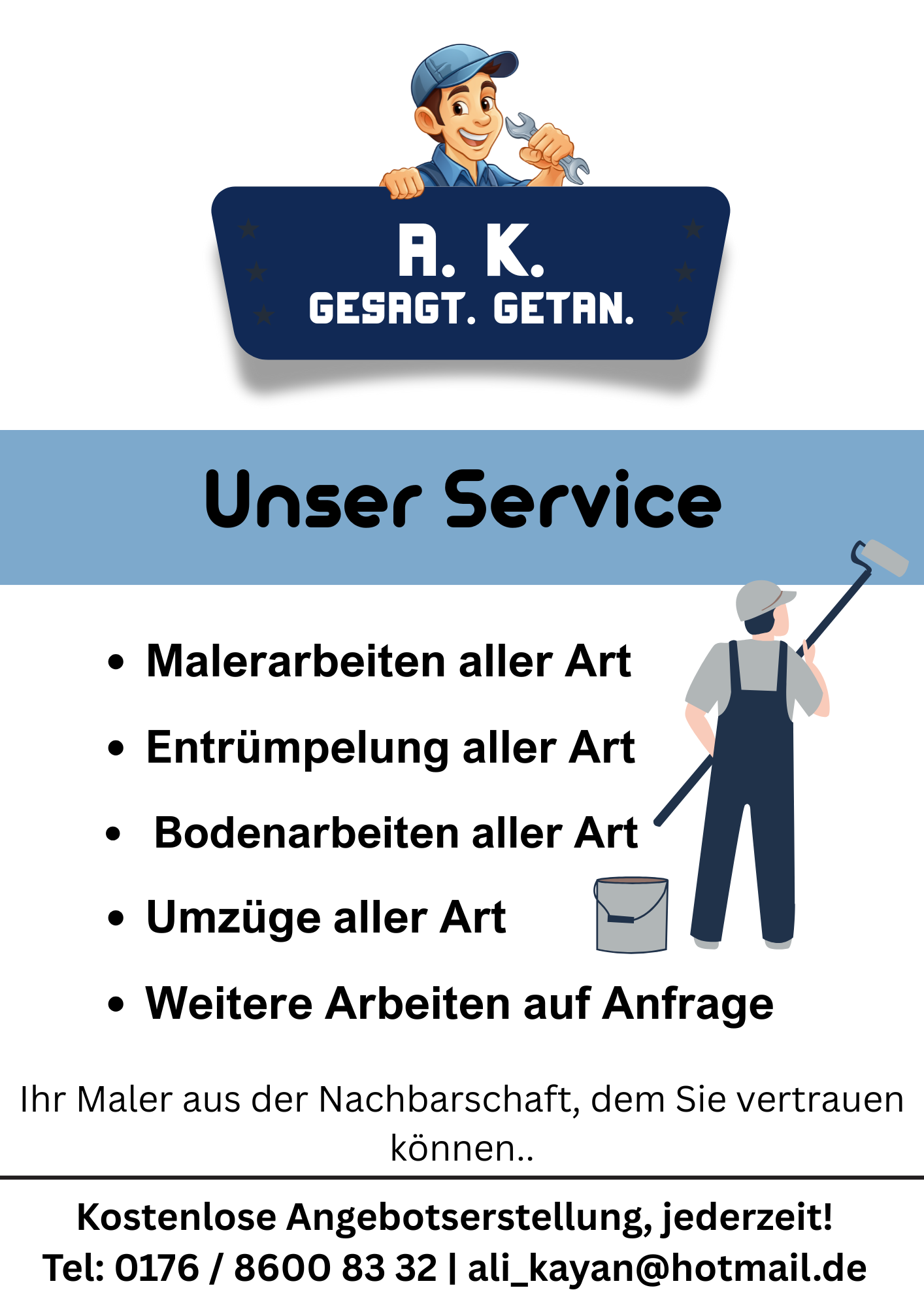 Ali hat, zu unserer vollsten Zufriedenheit, die Malerarbeiten in unserer Wohnung ausgeführt .